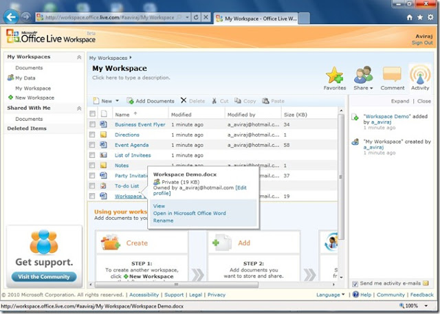 Eğer Gmail yerine hotmail hesabınız varsa veya MSN’iniz hep açıksa, Microsoft Office’in bu versiyonu hoşunuza gidebilir. Diğer siteler gibi dokümanlarınızı, mail hesabınıza kaydedebilirsiniz ve heryerden erişebilirsiniz. Ancak Microsoft gene yapmış yapacağını ve çok güzel olabilecek bir servisi berbat etmeyi başarmış. Elinizdeki dosyaları Office Live‘e yükleyemediğiniz gibi, orda oluşturduğunuz dosyaları herhangi bir dosya formatıyla kaydedemiyorsunuz, saçmalık ama .doc uzantılı olarak bile kaydedemiyorsunuz. Sadece Office 2010 kullanıyorsanız, oluşturduğunuz dosyaları bilgisayarınıza alabiliyorsunuz. Office Live’in tek avantajı, arayüzünün word’e oldukça yakın olması ama sonuçta elinizdeki dosyaları aktaramadıktan sonra bir işe yaramıyor.