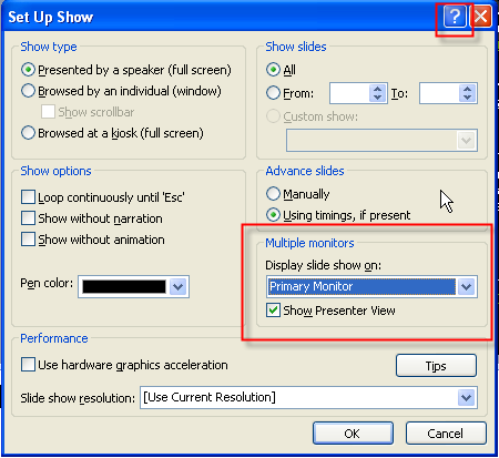 Presenter-view’ı SlideShow –>Set up Slide Show –> View –>gelen pencerede “Show Presenter view”ı tıklayarak açabilirsiniz (Bendeki versiyonu İngilizce ama Türkçe’sinde de aşağıdaki menüyü açınca kolayca bulursunuz).