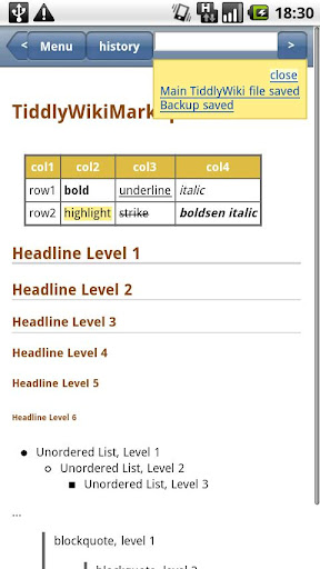 Android için en başarılı uygulama ise galiba AndTidWiki. Android marketten ücretsiz indirebilirsiniz. Ayrıca bilgisayarınızda kullandığınız TiddlyWiki’nin görünüm ayarlarınışu sayfada gösterildiği gibi değiştirerek telefonunuzun ekranı için uygun hale getirebilirsiniz.