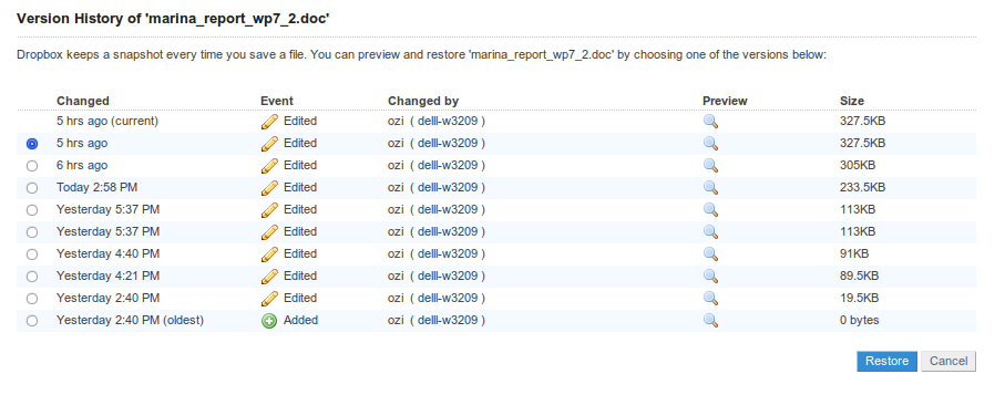 Dropbox’u kullandığınızı varsayarak (eğer kullanmıyorsanız önce şu yazıyı okuyabilirsiniz), dosyalarınızı kendinize mail atmak, flash-diske yedeklemek gibi alışkanlıkları terk ettiğinizi sanıyorum. Dosyaları _v1, _v2, _son şeklinde kaydetmenize de gerek yok, çünkü Dropbox’da dosyaların eski versiyonlarına ya da yanlışlıkla sildiğiniz dosyalara kolayca ulaşabilirsiniz. Bunun için dropbox.com adresinden hesabınıza giriş yapıp, önceki sürümlerini görmek istediğiniz dosyaya sağ tıklayın. Dosyanın son 1 ay içinde yapılmış tüm değişikliklerine ulaşabileceksiniz.