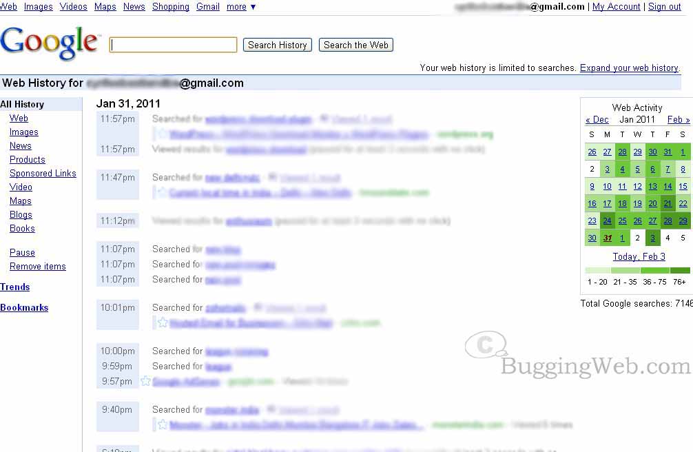 google.com/history adresinde tüm internet aramalarınız kaydediliyor.