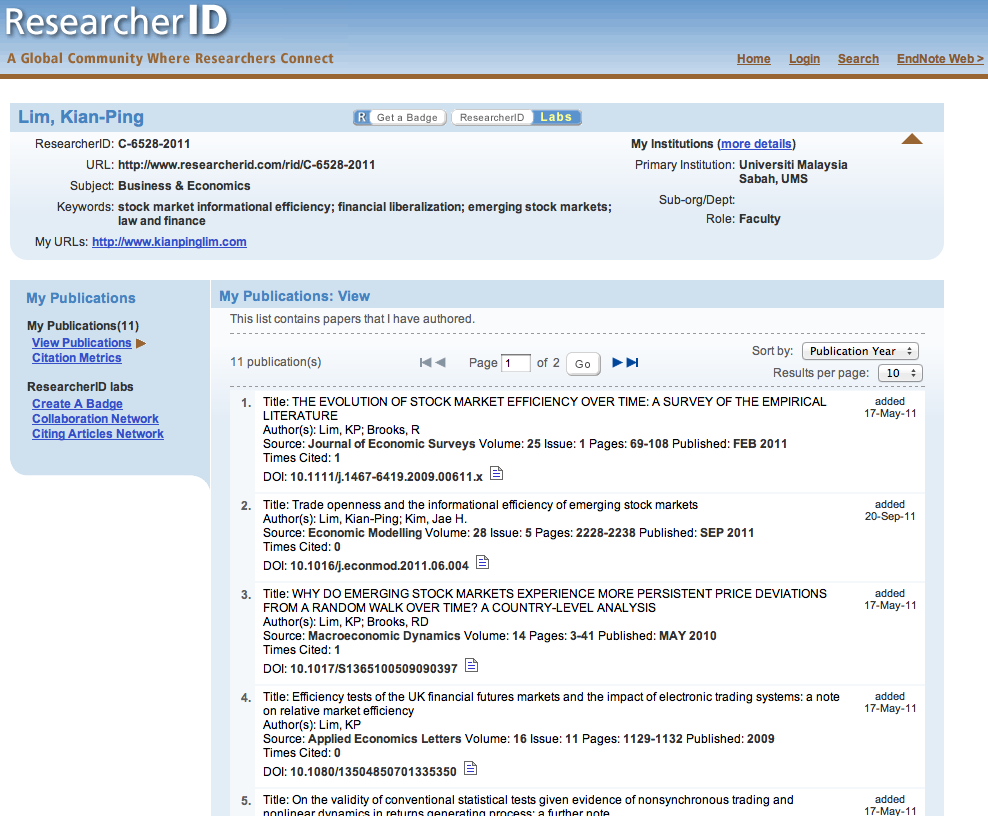 Thomson Reuters kuruluşunun bir sayfası. Üye olduktan sonra makaleleriniz ve onlara yapılan atıfları listeyebilirsiniz. Henüz kullanmadım. EndNote ve Web of Science’la da ortaklıkları var anladığım kadarıyla. Tüm makaleleriniz listeyebiliyorsunuz, yıllara göre etki faktörlerini ve referans sayılarını görebiliyorsunuz. Sitedeki bilgiye göre, Türkiye’den 1765 tane kullanıcı varmış. Eğer bu 1765 kişiden biriyseniz, ResearcherID ile ilgili yorumlarınızı beklerim.