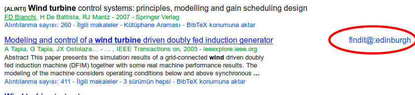 4 - Artık arama yaptığınızda sağ tarafta görünen linklere tıklayarak, kütüphane şifrenizle makalelere erişebilirsiniz. Ayrıca arkadaşlarınızla şifre değiş-tokuşu yapıp erişemediğiniz makalelelere ulaşabilirsiniz.