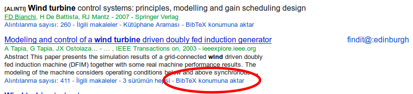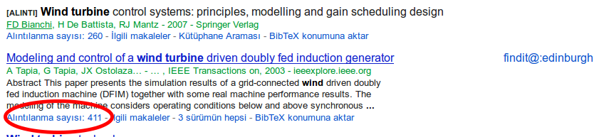 Bir makale arattırdığınızda aşağıdaki linkten o makaleye alıntı veren tüm makalelere kolayca ulaşabilirsiniz.